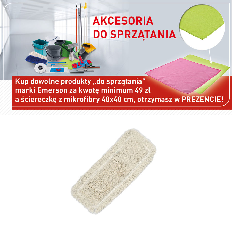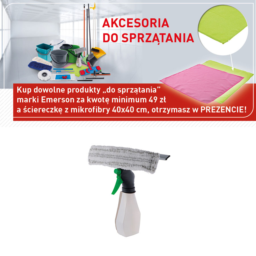Kup dowolne produkty do sprzątania marki Emerson za kwotę minimum 49 zł a ściereczkę z mikrofibry 40x40 cm, otrzymasz w PREZENCIE!