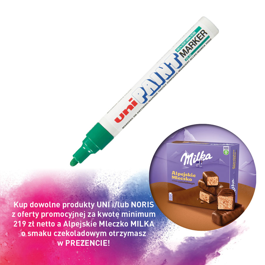 jm.: Kup dowolne produkty UNI i/lub NORIS z oferty promocyjnej za kwotę minimum 219 zł netto a Alpejskie Mleczko MILKA o smaku czekoladowym otrzymasz w PREZENCIE!
