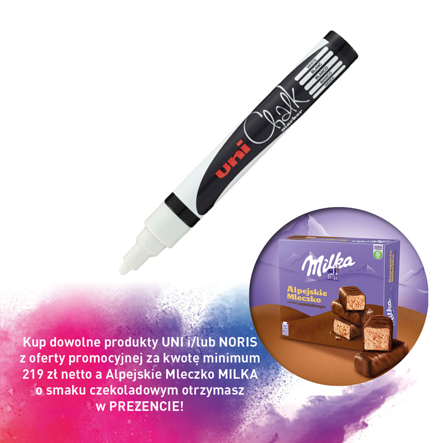 jm.: Kup dowolne produkty UNI i/lub NORIS z oferty promocyjnej za kwotę minimum 219 zł netto a Alpejskie Mleczko MILKA o smaku czekoladowym otrzymasz w PREZENCIE!