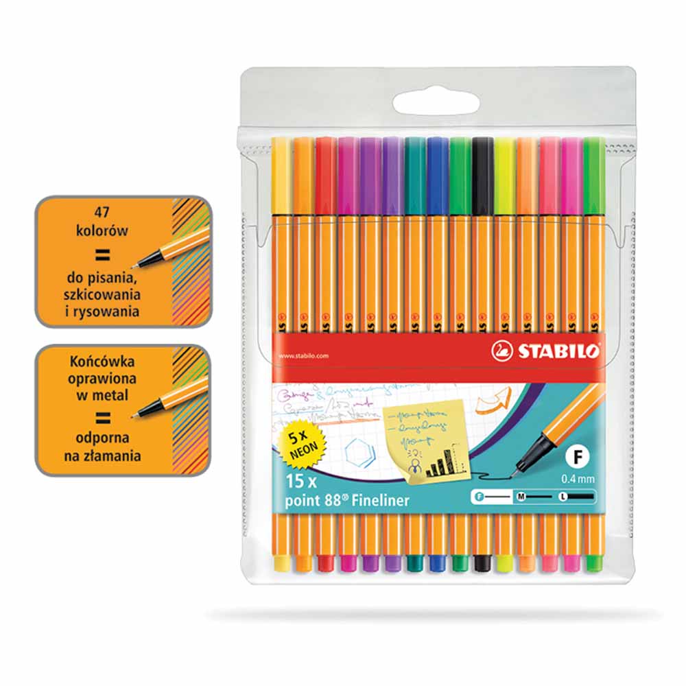 STABILO point 88 to uniwersalne narzędzia do pisania, podkreślania, kreślenia i kolorowania. Ich wszechstronność sprawia, że są idealne zarówno do pracy biurowej, jak i do kreatywnych projektów szkolnych czy domowych.