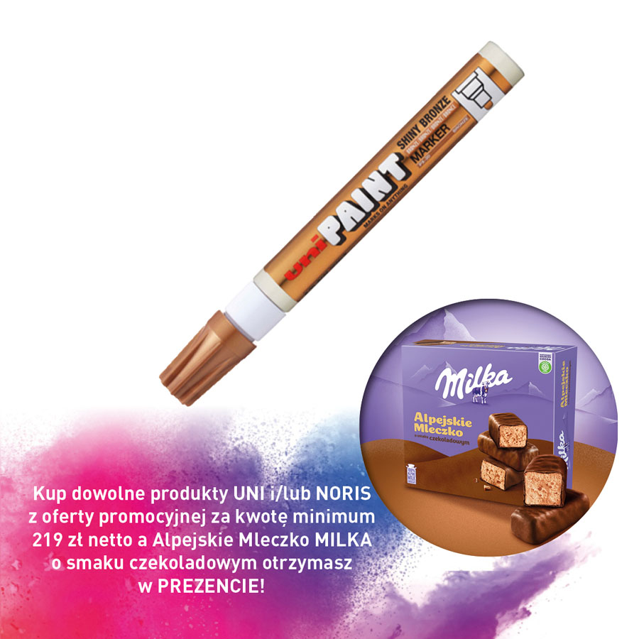 jm.: Kup dowolne produkty UNI i/lub NORIS z oferty promocyjnej za kwotę minimum 219 zł netto a Alpejskie Mleczko MILKA o smaku czekoladowym otrzymasz w PREZENCIE!