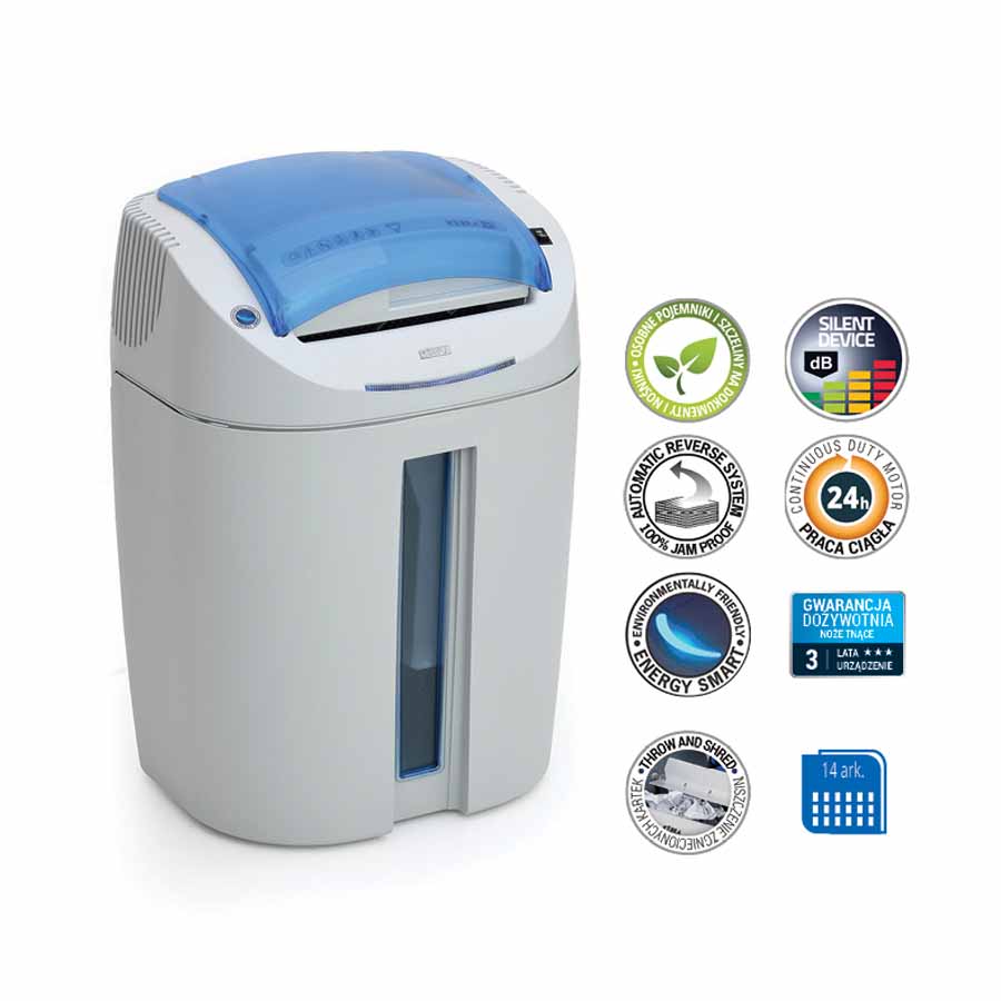 | ilość niszczonych kartek | 14 (A4/ 80 g) lub 16 (A4/ 70g) |