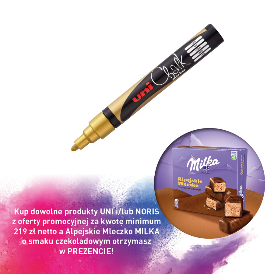 jm.: Kup dowolne produkty UNI i/lub NORIS z oferty promocyjnej za kwotę minimum 219 zł netto a Alpejskie Mleczko MILKA o smaku czekoladowym otrzymasz w PREZENCIE!