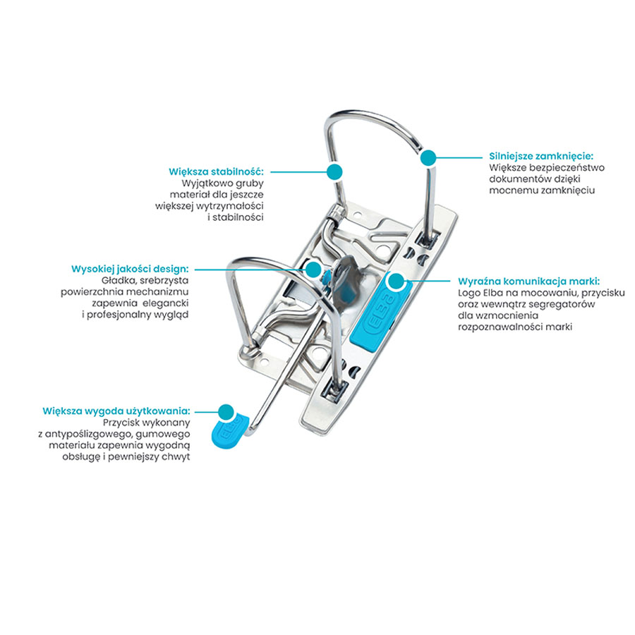 - mocny mechanizm dźwigniowy zabezpiecza kartki przez wypadaniem i umożliwia ich łatwe przeglądanie