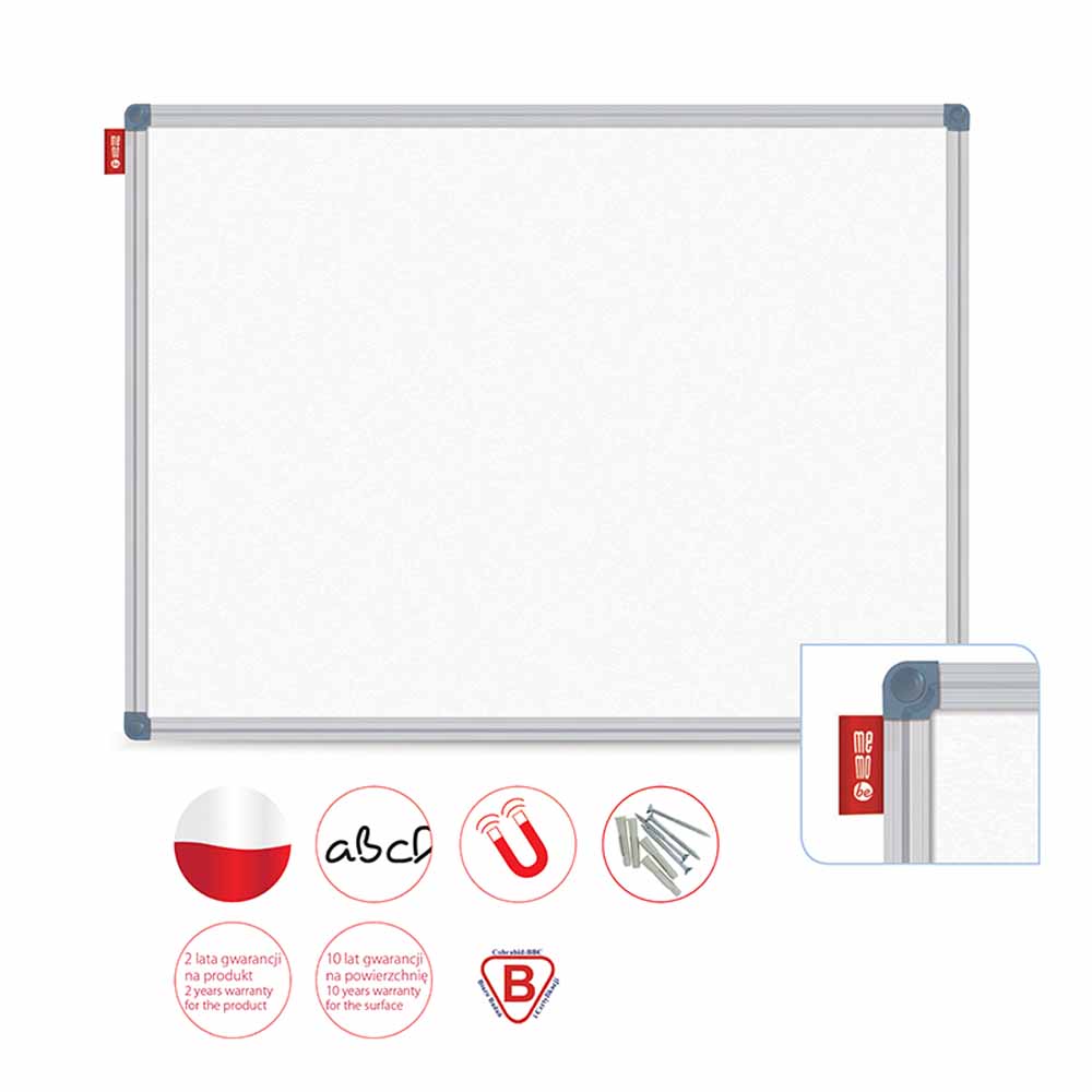 Rama tablicy wykonana została z wytrzymałego aluminiowego profilu w kolorze srebrnym, który nie tylko zapewnia trwałość, ale również nadaje tablicy nowoczesny wygląd. Eleganckie narożniki podkreślają jej estetykę i sprawiają, że idealnie komponuje się w każdym wnętrzu.