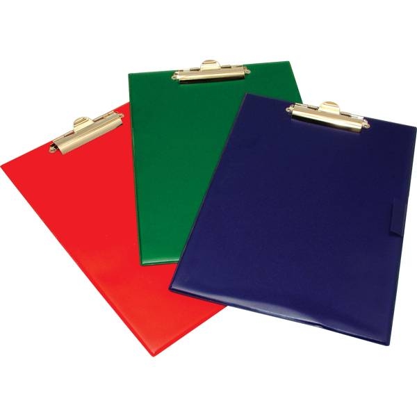 podkładka do pisania bez okładki, wykonana z tektury o grubości ok. 2mm pokryta wysokiej jakości PVC zacisk sprężynowy posiada metalowy zacisk spinający do 50 kartek o gramaturze 70gsm na dłuższym boku znajduje się kieszonka na długopis lub ołówek możliwość zawieszenia podkładki za pomocą specjalnego oczka umieszczonego w zacisku format: A4 rozmiar: 230x350mm kolor zielony