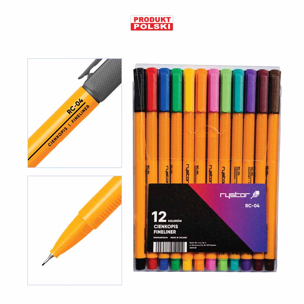 fibrowa końcówka oprawiona w metal, odporna na rozwarstwianie się obudowa w kolorze tuszu o heksagonalnym kształcie i paskami w wzdłuż obudowy wentylowana skuwka w kolorze tuszu o heksagonalnym zakończeniu tusz na bazie wody, odporny na wysychanie bezzapachowy nietoksyczny długość linii pisania: 500-600m linia pisania: 0,4mm końcówka: 0,4mm na każdym cienkopisie nazwa modelu D-fine, marki Donau oraz grubość 0,4mm idealny do tworzenia kolorowych notatek, pracy z szablonem itp. do użytku w biurze, szkole oraz w domu obudowa wykonana z PP ISO 9001 opakowanie: 10 kolorów kolor: mix kolorów