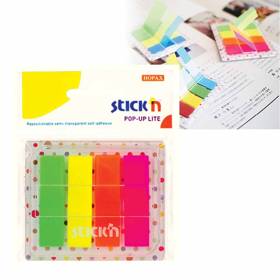zakładki indeksujące, idealne do pozostawienia uwag, informacji w formie zakładki ilość zakładek: 4x35 w rozmiarze 12x43mm wykonane z folii PP o grubości 60μm wielorazowe z możliwością zapisu nowe, żywe, fluorescencyjne kolory przyciągają spojrzenie klej usuwalny za pomocą wody kolor: mix kolorów (pastel)