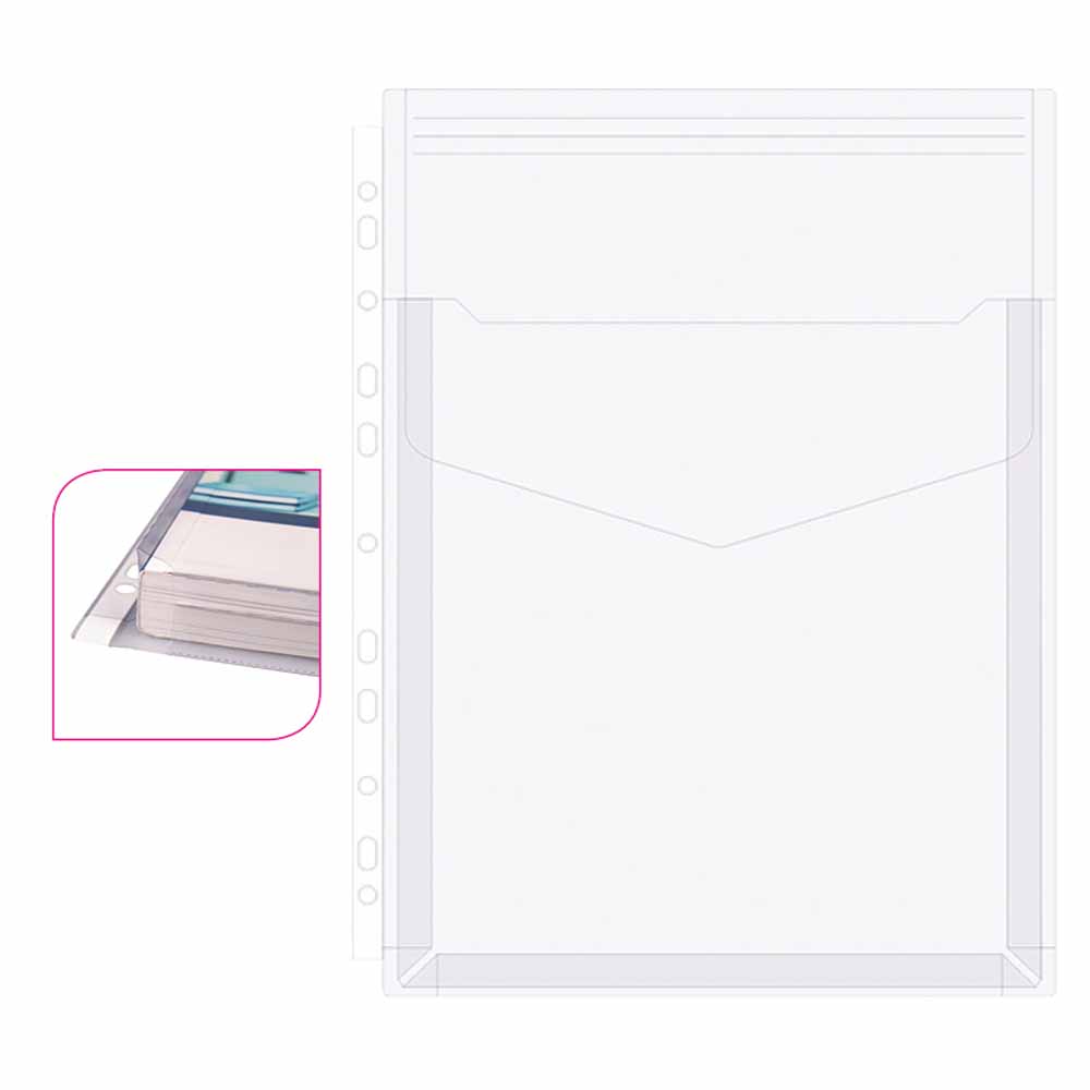- boczna perforacja umożliwia wpięcie do segregatora z dowolnym ringiem