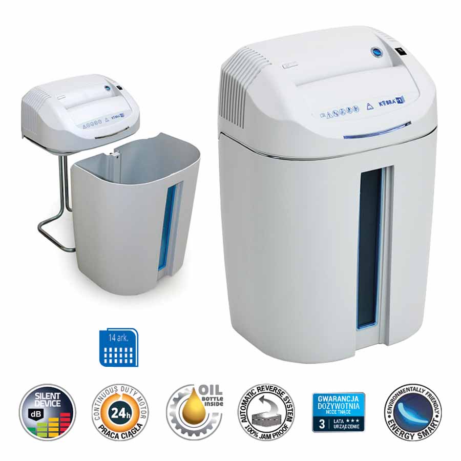 Niszczarka Wallner JP 826C wyposażona jest w wyjmowany pojemnik na ścinki o pojemności 35 litrów, co ułatwia jego opróżnianie. Optyczny wskaźnik napełnienia kosza oraz osobne szczeliny i pojemniki na płyty CD i karty plastikowe pozwalają na wygodną segregację odpadów. W zestawie znajduje się również butelka oleju o pojemności 30 ml, co ułatwia konserwację urządzenia i zapewnia jego długotrwałą sprawność. Dzięki kompaktowym wymiarom oraz obudowie na kółkach, niszczarka jest łatwa do przenoszenia i idealnie wpasowuje się w każde biurowe środowisko.